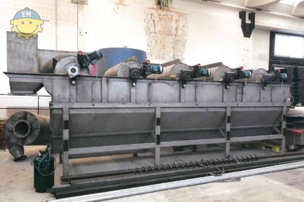Linia myjąca CMD do folii LDPE, HDPE i MDPE, o wydajności do 700 kg/h, zawierająca młynki, wirówki, zbiornik flotacyjny i silosy; zdemontowana, ale w dobrym stanie. Marka i model: CMD Materiały, które można przetwarzać: Folia, LDPE, HDPE, MDPE Wydajność: Do 700 kg/h, w zależności od rodzaju materiału i szybkości podawania Dalsze informacje: Przepracowane tylko 4/5 miesięcy od roku produkcji Przystawki i akcesoria:- 1 x młynek 1000