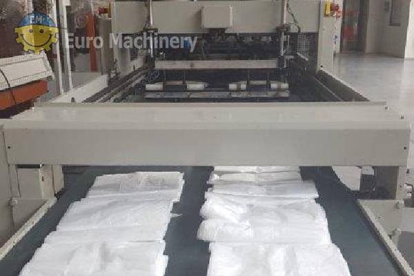 COEMTER TER BLOCK Maszyna do produkcji worków z dolnym zgrzewem i worków na koszulki do 300 cpm. worki o wymiarach 2 x 370 mm i długości od 300 do 700 mm. Marka i model: COEMTER TER BLOCK 856 N Rodzaj produkcji: Worki z uszczelnieniem dolnym tzw. “Koszulka” Materiały, które mogą być przetwarzane: LDPE, HDPE, LLDPE Szerokość zgrzewu (szerokość worka): 2 x 370 mm Długość ciągnięcia (długość worka): Od 300 do 700 mm Liczba pasów: 2 Prędkość liniowa: do 140 m/min Worki na min.: Do 300 cpm Inne szczegóły:- Ostateczne rozmieszczenie worków: Tabela