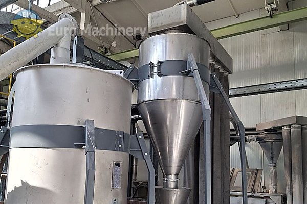 Kompletna linia do recyklingu i repeletyzacji PET wyposażona w wytłaczarkę EREMA VACUREMA 1512 T ecoSAVE ze zintegrowanymi suszarkami krystalizacyjnymi, systemami próżniowymi i granulatorem podwodnym. Ta certyfikowana przez EFSA instalacja zapewnia wydajne przetwarzanie materiału przez około 21 000 godzin pracy i jest w dobrym stanie technicznym.
