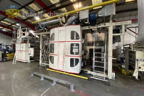 Filippini & Paganini Stand-alone stack printer to przemysłowa fleksograficzna maszyna drukarska stosowana w przemyśle opakowaniowym i przetwórczym do drukowania wysokiej jakości grafiki na elastycznych materiałach, takich jak folia plastikowa, worki, torby i inne w 6 kolorach i powtarzalności druku 450-950 mm. Marka i model: FILIPPINI & PAGANINI Superflexol 6 SWR/AWR-MATIC Liczba kolorów: 6 kolorów (6+0, 3+3, 4+2, 5+1) Materiał do druku: PE, PP Szerokość druku: 800 mm Powtarzalność druku: 450 mm – 950 mm Prędkość mechaniczna: do 200 m/min Nawijarka:- Nawijarka rewolwerowa, z latającym splotem, non-stop.