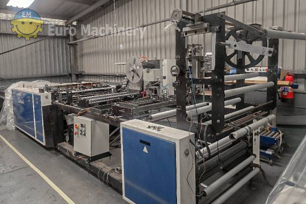 Maszyna do produkcji worków ze zgrzewem bocznym LIMAX do produkcji różnego rodzaju worków ze zgrzewem bocznym, o szerokości zgrzewu od 70 mm do 700 mm i długości naciągu od 100 mm do 900 mm. Marka i model: LIMAX Typ: Maszyna do produkcji worków ze zgrzewem bocznym Rodzaj produkcji: Worki ze zgrzewem bocznym:- Różne rodzaje worków zgrzewanych bocznie.